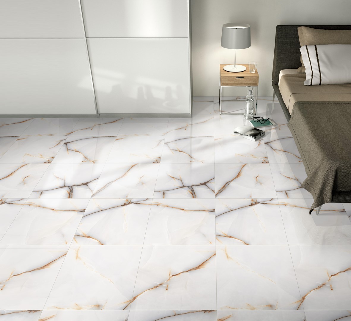 • Kolorystyka: Jasne tło z ciepłymi, złotymi żyłkami inspirowanymi kamieniem onyksowym